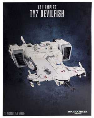 The Tau Devilfish is a sleek, swift transport ship, able to quickly move Tau units from location to location, enabling them to rapidly redeploy and counter threats to any area of the battlefield.