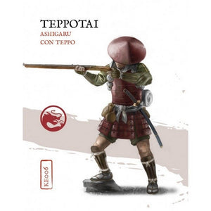Japanese musket riflemen. Muzzle loaded, smoothbore firearms, fired from the shoulder, the riflemen triggered a hot or burning wick to ignite gunpowder load that sent the musket ball flying across the battlefield. A great addition to your Kuge faction for your games Of Kensei.