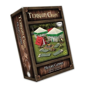 Bring your tabletop to life with the Military Campsite set. This set includes 26 pieces of scenery to customise your fantasy battlefields. the Miliary Campsite contains tents, bedrolls and a campfire. Everything your troops need to stay warm at night.