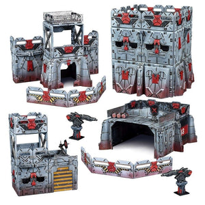 This set contains nearly 200 pieces of modular terrain including 240 Connectors, allowing you to construct a sprawling military base or many smaller armoured buildings. There are defence lasers, barricades, armour upgrades for walls and some industrial components to add variety to your structures.