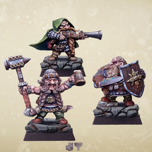This set contains 3 resin miniatures of Thargomind Dwarves. Dedicated for Umbra Turris Skirmish Game. The miniatures are compatible with other 28 mm scale miniature wargames and tabletop RPGs.