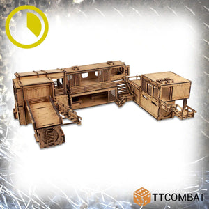 The Condo Stacks, because even in the slums there is always someone who has a taste for the finer things. These individual buildings can be arranged together or spread out across your game table. They feature removable roofs and floors, giving them a fully playable exterior and interior. Combine this kit with other Stacks and container kits in the Freighter Graveyard range to create an entire board!