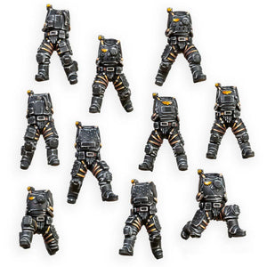 Resembling their grim attitude, the attires of Trench Korps are in dark colors, full of unforgiving spikes.