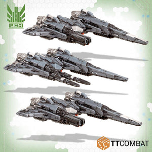 This set contains 3 UCM Cutters, all able to be built as either Reykjavik or Nuuk variants. There are parts to build 3 ships, of either variant, offering brand new options to the UCM.