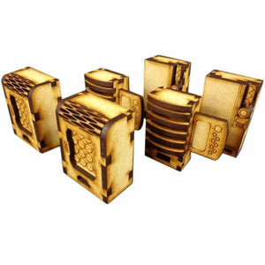 The Vending Machines are made from 3mm MDF, easy to put together and looks great on the tabletop. It is a great piece of scenery to use with Infinity. We advise using PVA glue to build it for the best results.