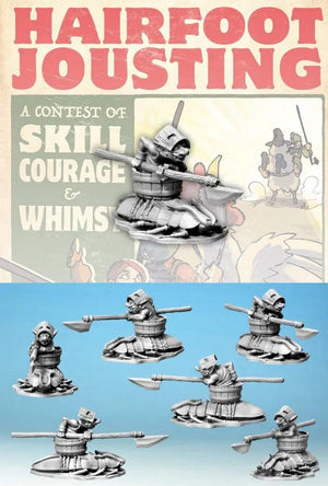Hairfoot Jousting is a fast-paced tabletop miniatures game where you lead teams of halfling "Hairfoots" mounted on all sorts of unruly creatures into jousting tournaments. Forget gallant steeds - these mounts have their own minds!