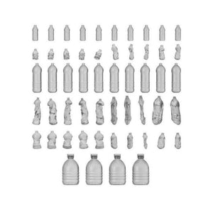 This set includes 2 strips of 2-size water bottles made of transparent resin. They are perfect to decorate your dioramas.