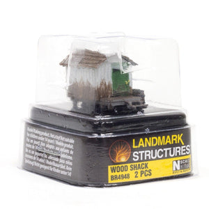 The bright green door is a little rugged now and the wood paneled walls could use a good wash, but it is still as secure as the day it was built. Building includes a raised foundation with two staggered steps up to a padlocked door, asphalt shingles, and two barrels once used for collecting rain water. Exterior details are unattached for customized placement or addition to other structures. Add Shacks along the track or behind factories, businesses, and homes to create even more realistic detail.