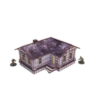 Multicolor prepainted (UV-printed) WW2 Ostfront (East Front) Village Dom (house) is a building with accessible colorful interior and removable roof. Room to fit in the whole infantry squad inside. Pre-cut acrylic transparent window panes included. Option to assemble with open or closed doors.