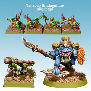 The set contains Xan'toag with a 30 mm round base, Liagulians carrying a mace with a 20 mm square base and 8 one-piece high-quality resin miniatures of Liagulians with four 20 mm square plastic bases.